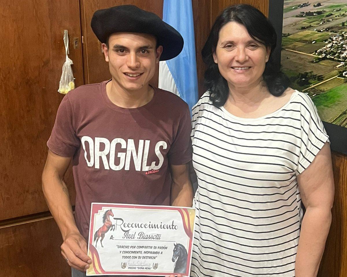 La Intendente de la localidad de Wheelwright, Julia Bertone, recibió a finalizar la semana al vecino Axel Biassotti, quien participó del Campeonato Interprovincial de Jineteada realizado el pasado domingo 14 de diciembre en la localidad de Loma Florida, Chaco, logrando el 1° Premio en Broche de las Provincias, 2° Premio en Rueda Basto con Encimera y 3° Premio en Crina Limpia.