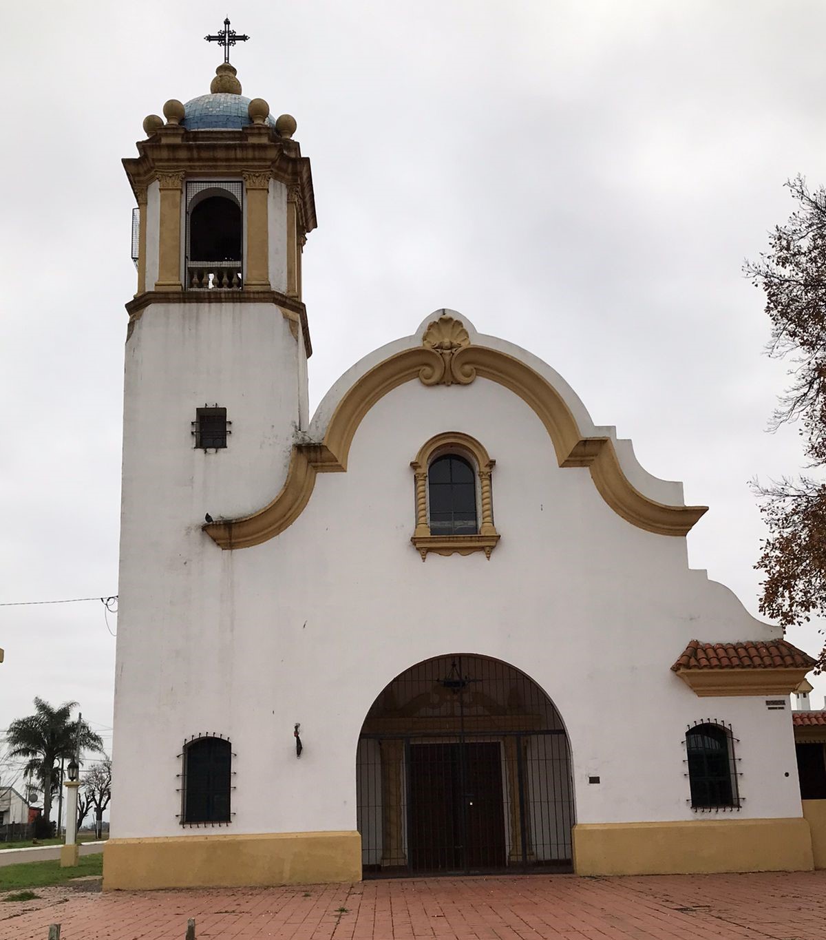 A simple vista, su estructura transmite una sensación de solidez y permanencia. La fachada, de líneas sencillas pero imponentes, está dominada por una torre campanario central que se eleva hacia el cielo, un elemento clásico en la construcción de Iglesias rurales en Argentina.